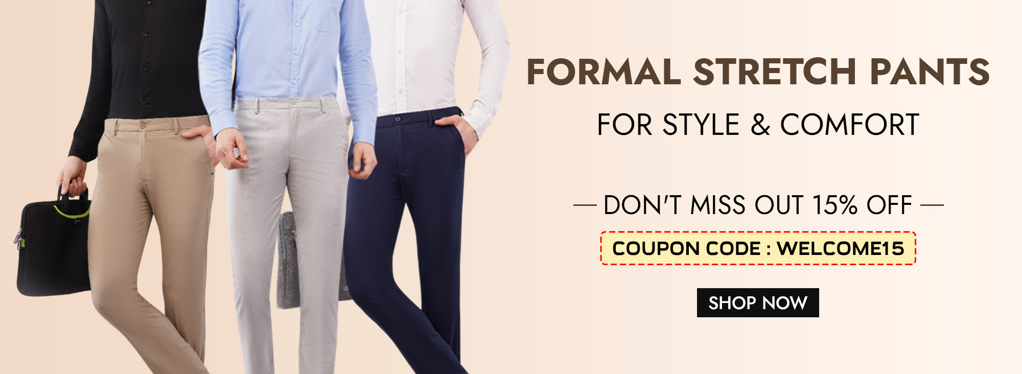 We’ve reimagined menswear by focusing on fabrics that breathe and fit that flex. Our stretchable formal pants collection of 2-way and 4-way ultra-flexible pants features a game-changing flexi-waist technology. It’s an ‘enhanced tailored fit’ meticulously crafted for the Indian frame, ensuring you look sharp without needing to adjust your waistband every ten minutes.